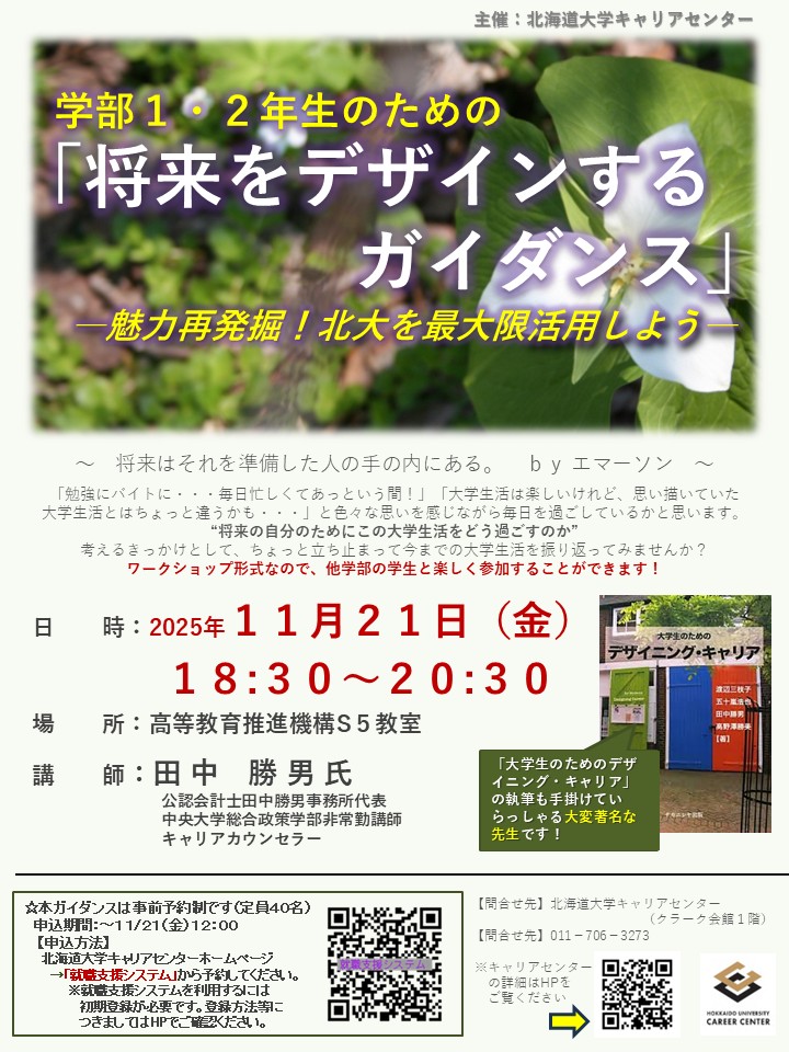 「学部1・2年生のための将来をデザインするガイダンス」を開催します!