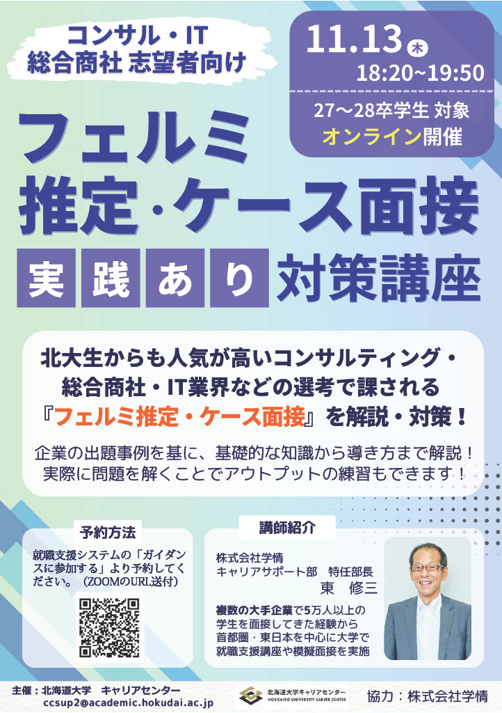 近年、北大生に人気のコンサル会社や総合商社の選考で頻出の「フェルミ推定・ケース面接」