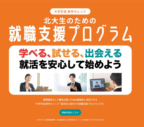 - ※北大生協「新卒カレッジ」と協働の支援プログラム(7月~)